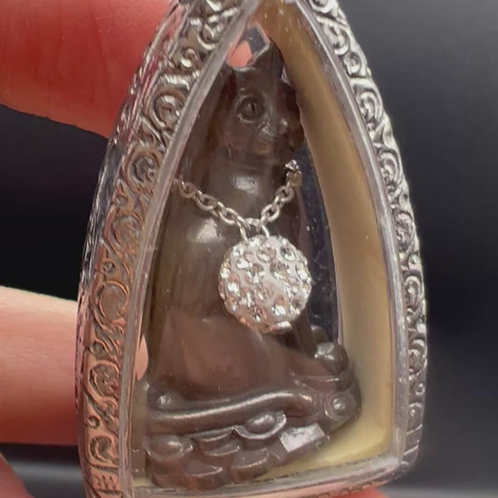 BLACK MEOW LOOK KROK è un amuleto di tradizione mistica ispirato ai rituali spirituali thailandesi legati al gatto come simbolo di intuito, protezione e successo materiale. È pensato per chi cerca un oggetto carico di significato, da portare con sé o custodire nel proprio spazio di lavoro come segno di apertura alle opportunità e di forza personale.