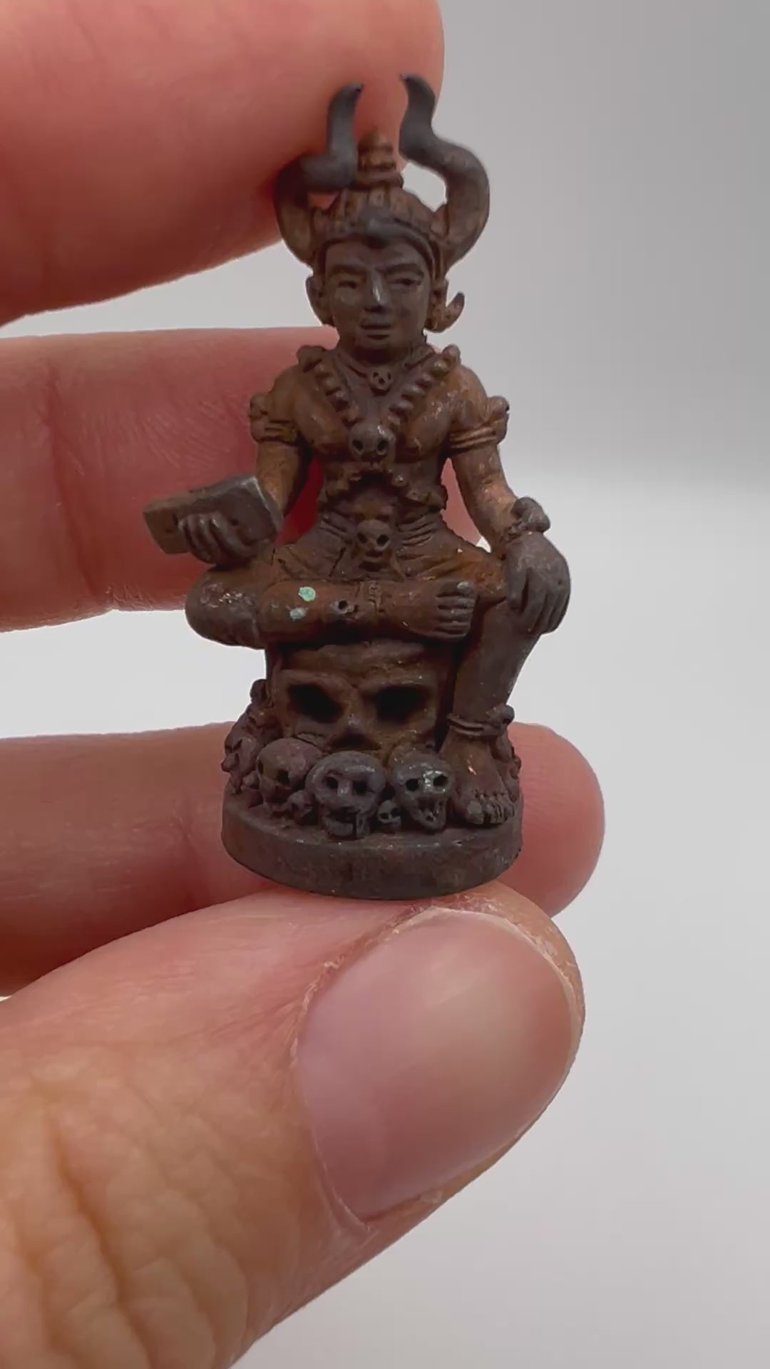 Realizzato per la prima volta in forma portatile nel Sud della Thailandia da Arjarn Pien Hatthayanon, maestro erede della leggendaria scuola magica di Wat Khao Aor, questo amuleto rappresenta un punto di svolta nella creazione di talismani sacri. Tradizionalmente, Lord Yama viene rappresentato in grandi statue da altare – qui invece lo troviamo in una forma tascabile e indossabile, senza perdere nulla della sua forza e autorità spirituale.